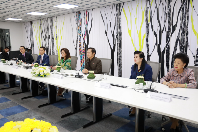 Minister Wu Zhiwu and Counselor Xu Lan of the Chinese Embassy in Thailand received the delegation, and listened to Mr. Han Linhai's report on talent cultivation, academic research, cultural exchanges, and other issues between Guangxi University and Thai universities, government sectors and scientific institutions. They fully affirmed the internationalized development strategy of Guangxi University of "Deeply Cultivating ASEAN and Facing the World" and the outstanding achievements of GXU in serving China-ASEAN development. They expressed that they would strongly support GXU to carry out education and teaching for foreign students in Thailand, the construction of Confucius Institute at Suphanburi and cultural exchanges between China and foreign countries, and also hoped that Guangxi University would continue to serve the construction of the "the Belt and Road" and the overall diplomatic situation of the country. Han Linhai stated that Guangxi University would carry out deeper exchanges and cooperation with Thailand in education, science and technology, culture, talent exchange and other fields based on its own characteristics and advantages, striving to make new breakthroughs in standardization, regional technology and socio-economic development, and contribute wisdom and strength to the construction of a closer China-ASEAN community with a shared future.