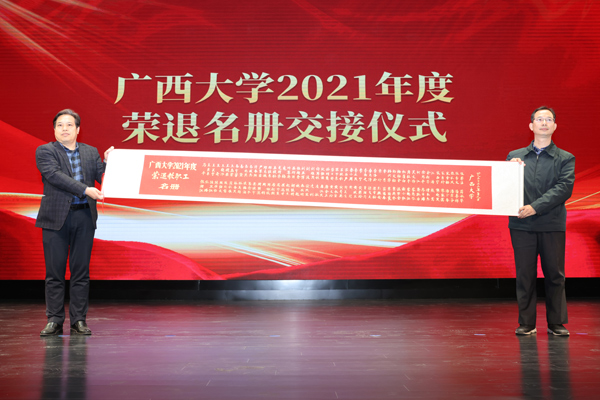 荣退仪式上,人力资源处、离退休工作处进行了新葡的京集团8814检测站2021年度荣退名册交接,精致装裱的荣退名册手写着2021年度荣退教职工名字,体现学校对退休教职工几十年兢兢业业为党工作、踏踏实实为校服务的敬重和肯定。