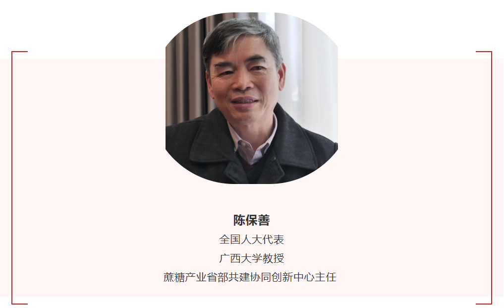 今年全国两会,陈保善恳请国家在糖料蔗良种良法技术推广、糖业科技创新以及产业发展等方面继续给予广西政策和资金上的支持,更加注重引导蔗糖产业科技进步和高质量发展。