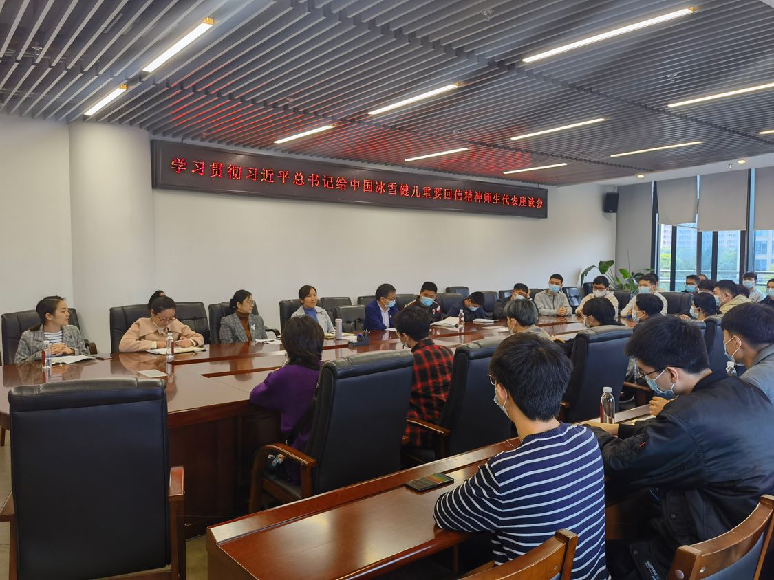 新葡的京集团8814检测站召开学习贯彻习近平总书记给中国冰雪健儿回信精神师生代表座谈会。学校供图