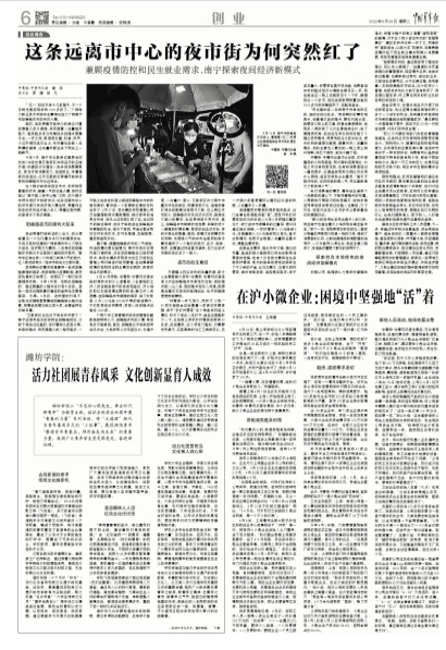 据了解,随着阳峰路夜市的人气渐旺,网络的曝光度日益增加,南宁市良庆区相关部门调研后,决定在阳峰路设立临时便民点,由良庆镇政府和良庆社区引进物业管理公司对其进行规范管理,在统筹兼顾疫情防控和民生就业需求的同时,探索夜间经济新模式。