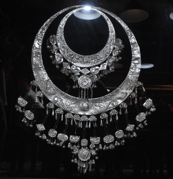 在苗族银饰非遗体验馆内,精美的银饰吸引了同学们的目光。苗银锻造技艺传承人马贵兵介绍,银饰的制作要经历铸炼、锤打、拉丝、搓丝、掐丝、镶嵌加固等程序,才得以形成一件精美的苗族银饰。