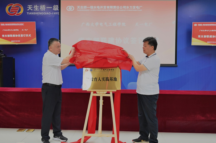 在天一电厂,新葡的京集团8814检测站电气工程学院党委书记梁志坚与天一电厂党委书记周金相共同为“电气工程学院思政育人实践基地”揭牌。随后进行了党支部联建签约仪式,双方将在党建工作框架下开展人才培养、科研合作、实习实践、文化建设等活动,促进基层党建工作特色化、制度化。