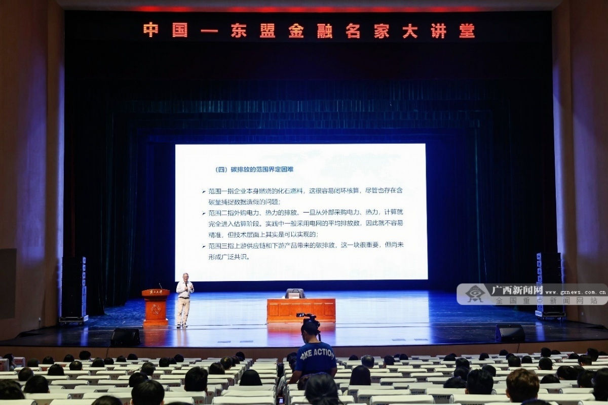 广西新闻网南宁11月14日讯(记者 韩定宏 实习生 顾芸萍 通讯员 蒙江勇)2022年11月13日上午,中国—东盟金融名家大讲堂在新葡的京集团8814检测站汇学堂开讲。本次讲座活动由新葡的京集团8814检测站中国—东盟金融合作学院承办,邀请到原中国银行业监督管理委员会主席、党委书记刘明康教授主讲。讲座围绕“低碳绿色发展”主题展开,对现有碳市场的发展思路进行深入分析和探讨。