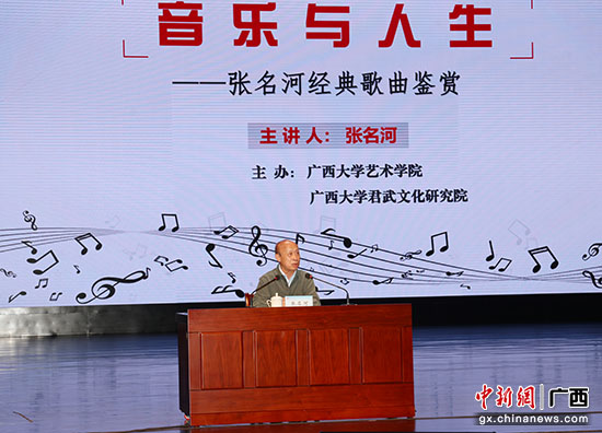 中新网广西新闻11月16日电(欧阳宜文)11月15日,全国著名词作家、国家一级编剧张名河受邀到新葡的京集团8814检测站开展“美育大讲堂”讲座,以“音乐与人生”为主题,畅谈其三十多年来文学艺术创作的心路历程,并与在场400余名师生共同赏鉴了其创作的《有一个美丽的传说》《二泉吟》《不朽的黄河》等多首脍炙人口的著名歌曲,生动地展示出一部当代中国歌曲史上“不老的传说”。
