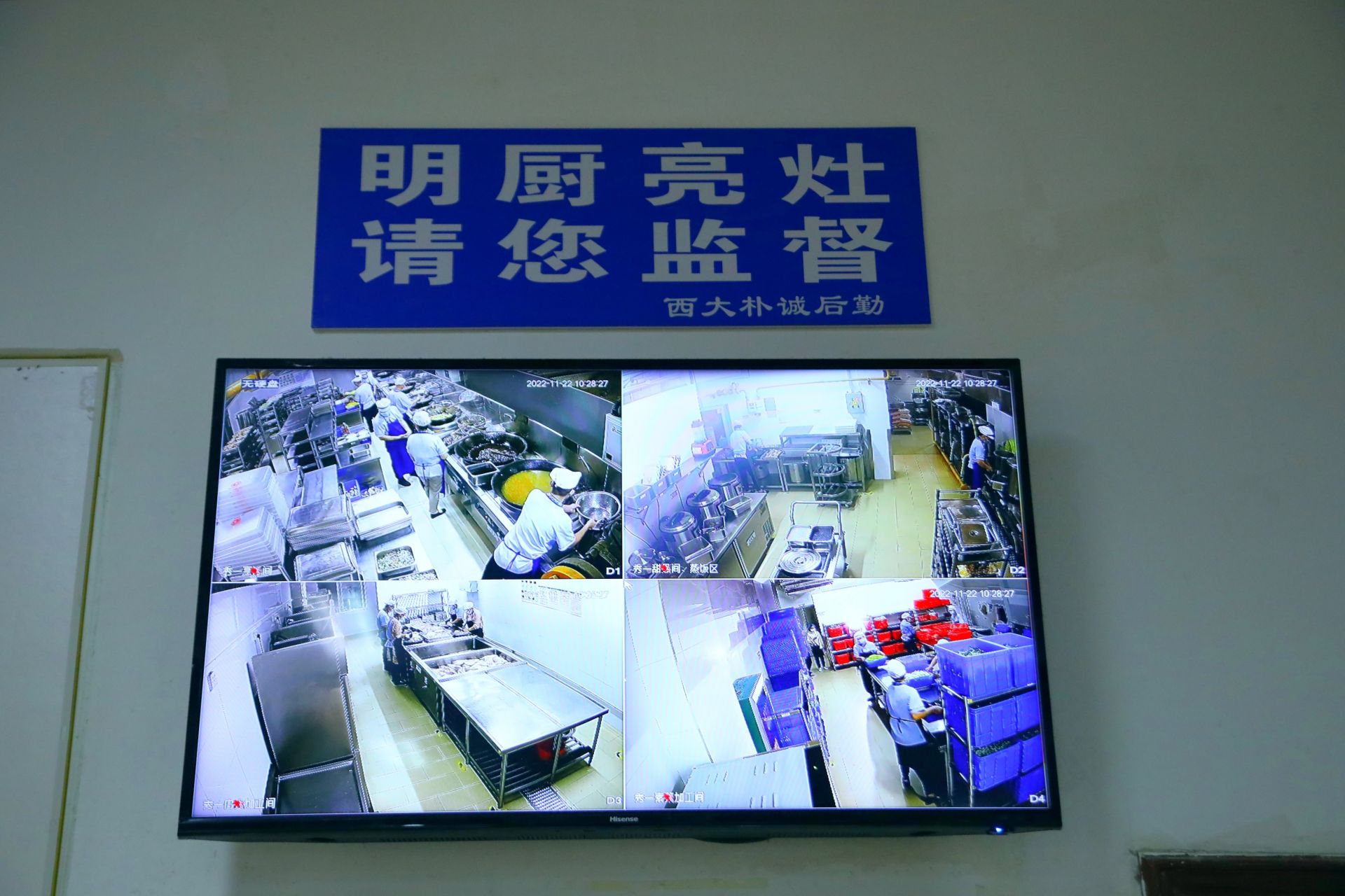 新葡的京集团8814检测站9个食堂共安装了500多个“明厨亮灶”高清摄像头,24小时对食堂的所有场所进行实时监控,将食堂的生产加工过程公开向学生展示,主动接受学生的实时监督,为师生“舌尖上的安全”筑牢防线。