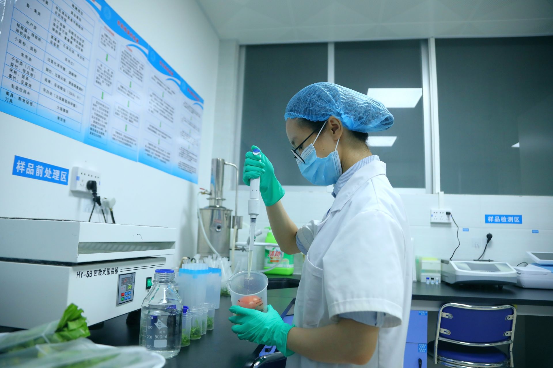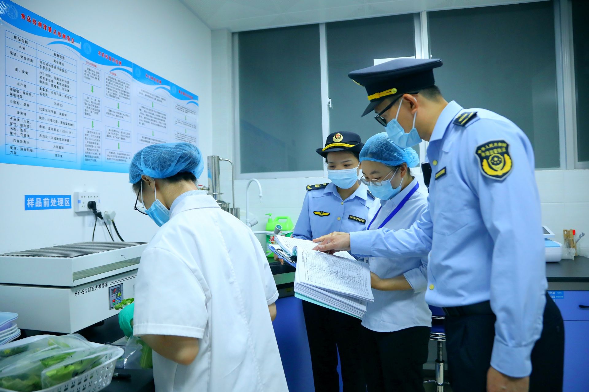 南宁市市场监管部门工作人员检查食品检测记录。广西新葡的京朴诚后勤产业服务有限公司工作人员表示,食堂工作人员需要在每天供应商送货时取样,按要求检测农残、兽药残留等指标,有效保障蔬果和肉类的质量,如不合格,立即退货,绝不允许不达标的蔬果和肉类流入食堂。