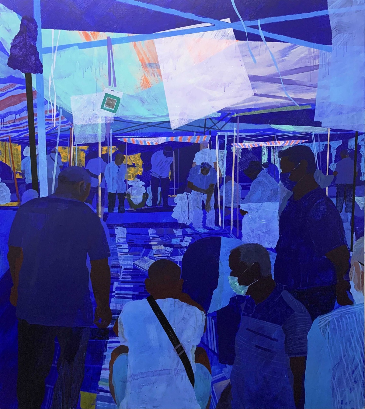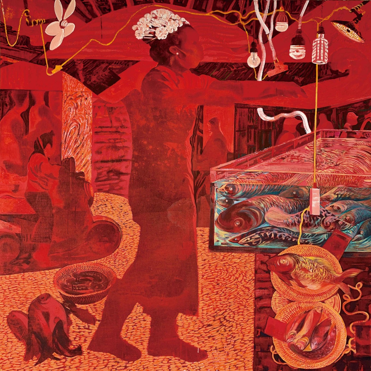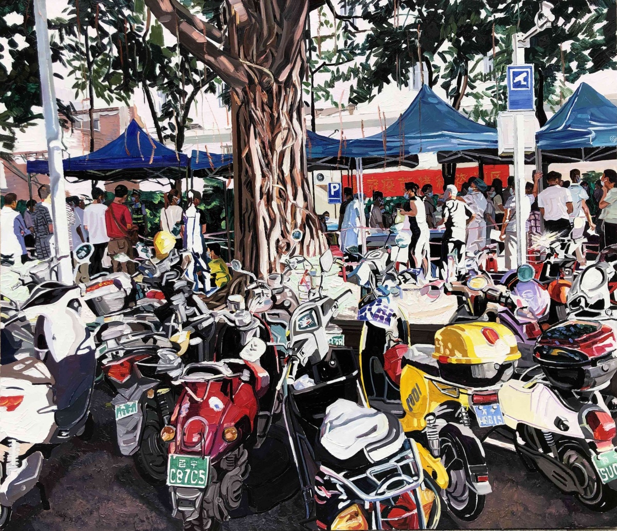 刘瑞森《人间烟火--锦绣路之鱼摊》 布面丙烯油彩 190×190cm 2022年。