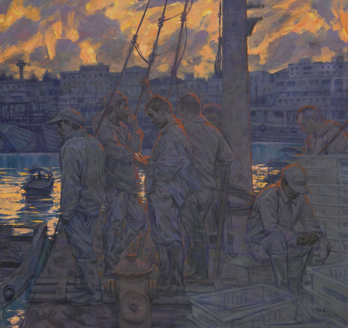 谢森 《北回归线记忆·北海渔港》 布面油画 150x160cm 2022年。