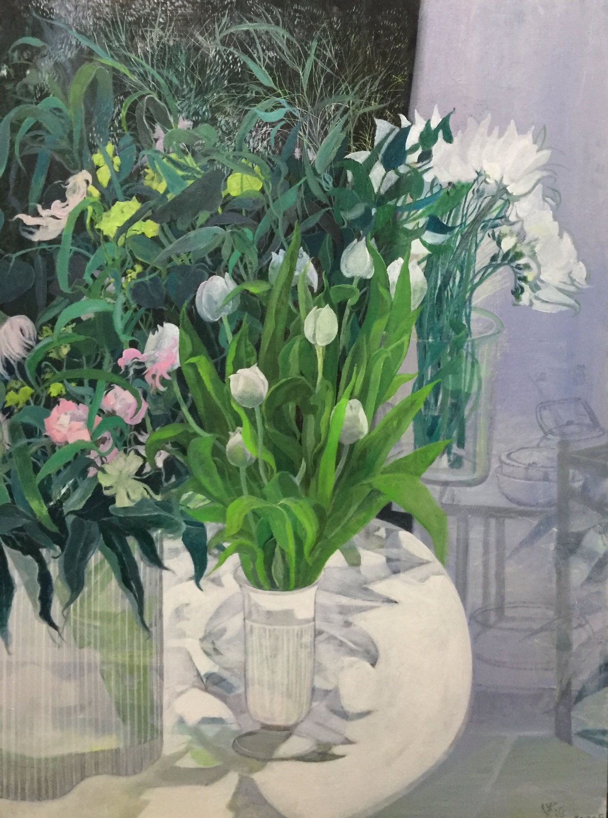 罗连 《静物-绿植》 布面油画 100x75cm2022年。