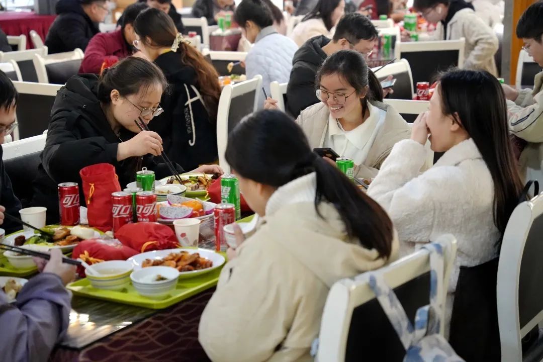 据悉,今年新葡的京集团8814检测站共有1200多名学生留校过年,学校全力做好服务保障工作,精心为留校过年的同学们准备丰盛的年夜饭、春节伙食补助金和“福袋”,让留校学生欢度一个祥和幸福年。