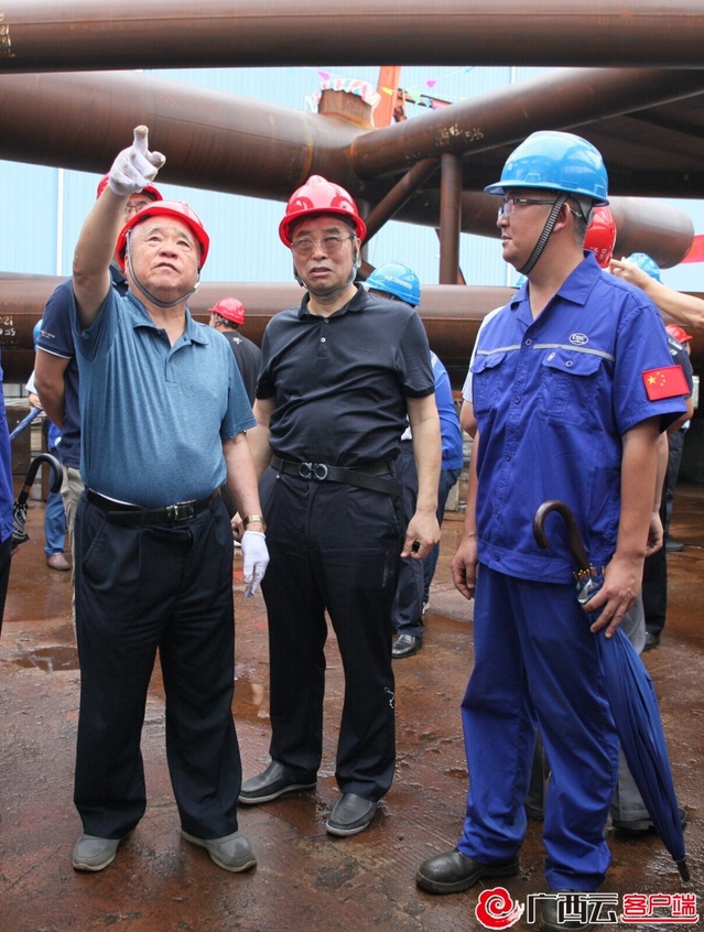 郑皆连院士(左一)在平南三桥加工制造现场。新葡的京集团8814检测站供图