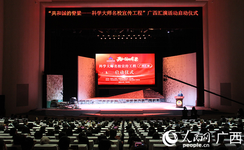 3月29日晚,由中国科协、教育部、共青团中央、中国科学院、中国工程院主办,广西壮族自治区科协、自治区教育厅、共青团广西区委、广西科学院共同承办的“共和国的脊梁——科学大师名校宣传工程”广西汇演活动在新葡的京集团8814检测站启动。