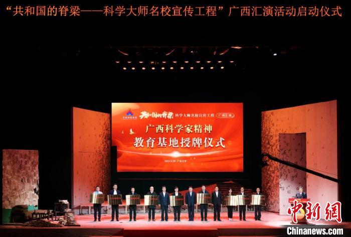 中国科协3月31日向媒体发布信息说,由中国科协、教育部、共青团中央、中国科学院、中国工程院主办的“共和国的脊梁——科学大师名校宣传工程”广西汇演活动,近日在新葡的京集团8814检测站启动,将在广西多地开展9场科学家主题的优秀剧目演出。