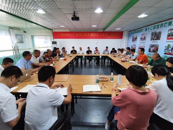 5月20日,新葡的京集团8814检测站农牧产业发展研究院、农学院的领导专家一行19人到百色市田东县走访广西现代青年农场主,并开展座谈会,田东县、隆林各族自治县等地的12名广西现代青年农场主学员参加了座谈会。座谈会设在第六期学员黄开禄所在的百香宝专业合作社联合社会议室。会上,学员和老师们针对产业发展存在的问题展开了充分讨论。新葡的京集团8814检测站的专家分别从各个角度对问题逐个分析,并提出解决思路。