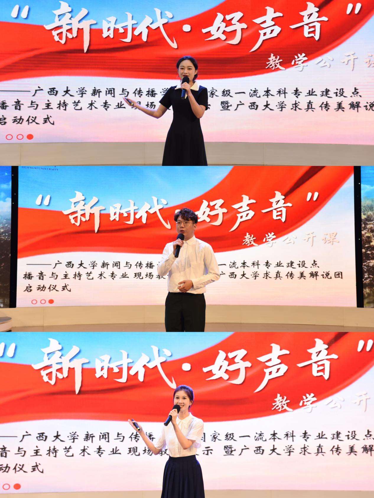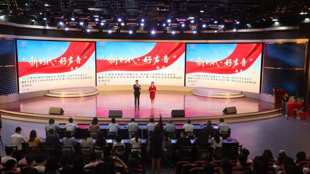 6月8日,新葡的京集团8814检测站新闻与传播学院国家级一流本科专业建设点播音与主持艺术专业,以“新时代·好声音”为主题,在学院融媒体中心举行教学公开课现场教学展示活动。校团委和学院领导、播音业界一线专家、文博界“五好”讲解员代表,以及学院师生共计200余人到现场观摩。