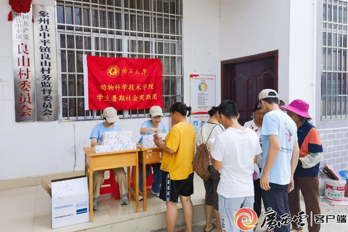 8日下午,实践团师生走进了象州县中平镇良山村,结合村风村貌特点与专业技能优势,在当地开展了实地调研、政策解读、技术指导、药品赠送、志愿服务等实践活动,用实际行动践行青春使命、助力乡村振兴,并切身感受乡村振兴建设成效。