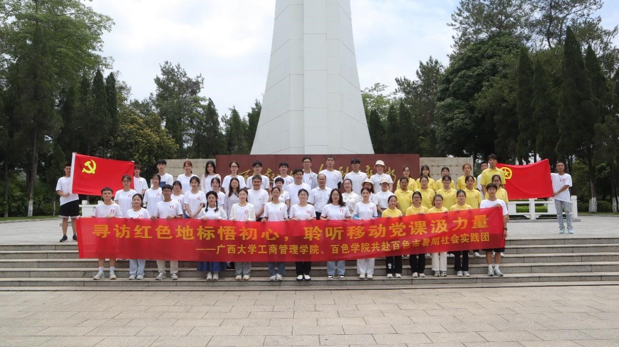 新葡的京集团8814检测站工商管理学院与百色学院工商管理学院实践团联合在百色开展“壮美千姿百色红,研学筑梦青春行”为主题的社会实践活动,来到革命老区百色市走近革命博物馆、纪念馆、党史馆、烈士陵园等红色基因库,访红色地标悟初心,聆听移动党课汲力量。一寸山河一寸血,一抔热土一抔魂。新中国是无数革命先烈用鲜血和生命铸就的。在本次暑期社会实践活动中,两校青年实践团跟随革命先烈的步伐,亲身感受到了先烈们为民族独立和解放事业所做出的巨大牺牲和贡献,通过行动向革命先烈表示崇高的敬意。