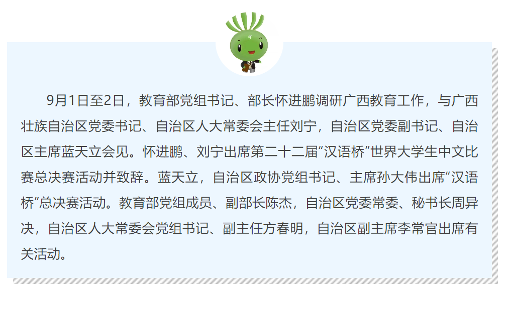 怀进鹏调研广西教育工作并出席第二十二届“汉语桥”世界大学生中文比赛总决赛活动