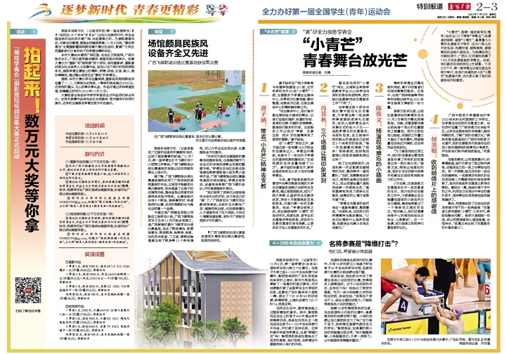 “小青芒”,是第一届全国学生(青年)运动会(以下简称“学青会”)志愿者的昵称,谐音“小青忙”,寓意着小小青年志愿者乐于帮忙,这与八桂儿女开放包容、热情好客、能帮就帮、敢做善成的品格不谋而合。为保障各项工作顺利进行,广西从32所高校招募了1.65万名志愿者服务学青会。目前,他们都在各自的岗位上忙碌着。11月9日下午,第一届学青会记者见面会在南宁举行,来自不同高校的4名“小青芒”志愿者代表,向大家分享了他们的服务经历和感受。