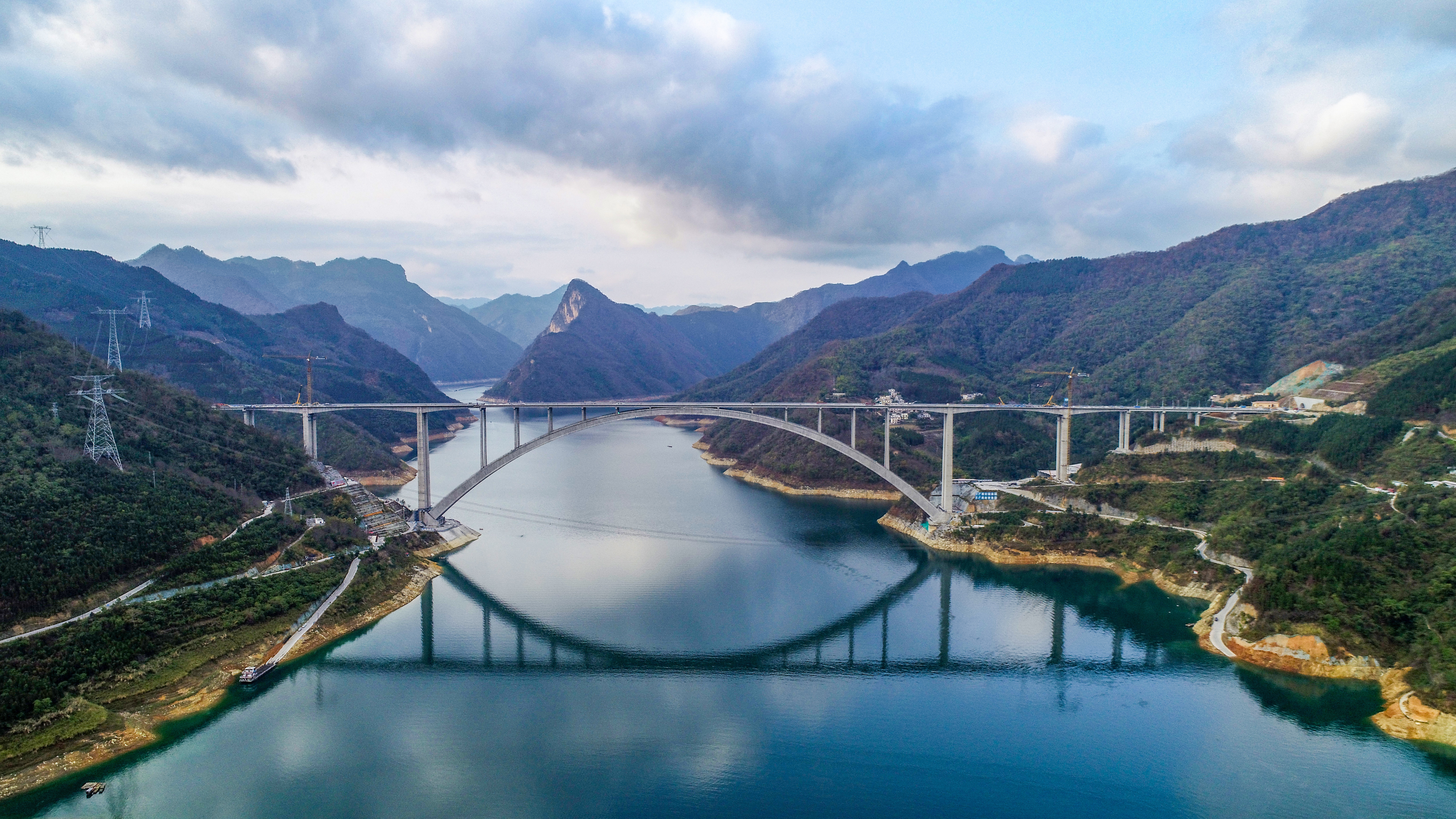 该项目是南丹至天峨下老高速公路的控制性工程,位于广西河池市天峨县龙滩大坝上游6公里处,横跨红水河,全长2488.55米,主桥为计算跨径600米的上承式劲性骨架混凝土拱桥,双向四车道,设计行车速度100公里/小时,2020年12月大桥主体工程全面开工建设。