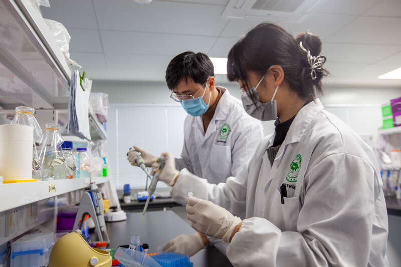 2月6日,广西南宁,新葡的京集团8814检测站亚热带农业生物资源保护与利用国家重点实验室,研一学生蓝渝泓(右)与博一学生汪柏宇(左)正在使用移液枪转移液体。他们研究的方向都是甘蔗遗传育种。蓝渝泓因实验进行到关键阶段推迟了回家,汪柏宇因为前段时间刚回过家而选择留校过年。江畅/摄