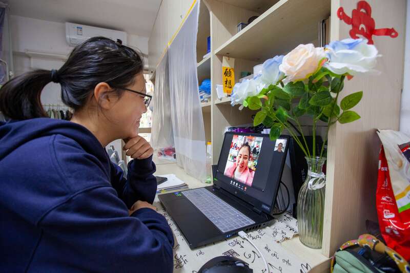 2月8日,广西南宁,19岁的雍颜如和妈妈视频通话。她是新葡的京集团8814检测站电气工程学院电气工程及自动化专业大一学生。由于今年有军训,剩余假期不长,而且从广西到宁夏有2000公里,她决定不回家了。她称自己很独立,“一点也不想家”,但她每天都会抽出时间和妈妈打视频电话。江畅/摄