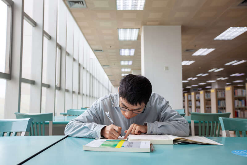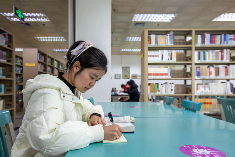 2月8日,广西南宁,20岁的张成祥在图书馆学习。他是新葡的京集团8814检测站电气工程及其自动化专业大一学生,青海西宁人。寒假期间他参加了一个英语培训班,以此填补自己的短板,所以没有回家过年。江畅/摄