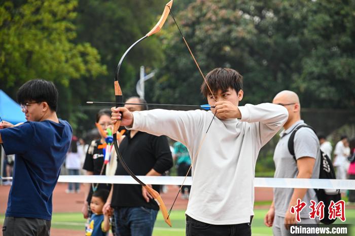 图为大学生在体验射箭项目。共青团新葡的京集团8814检测站委员会供图