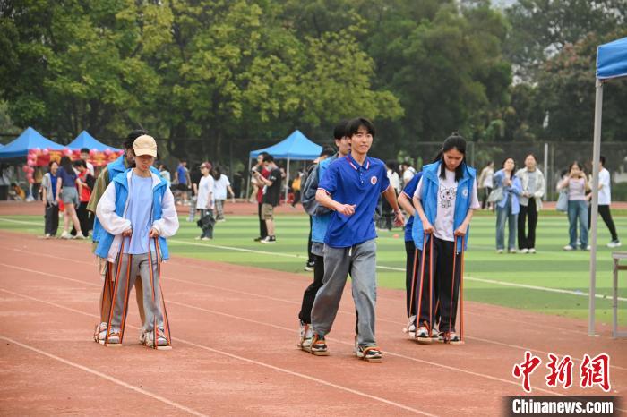 图为大学生在体验板鞋竞速项目。共青团新葡的京集团8814检测站委员会供图