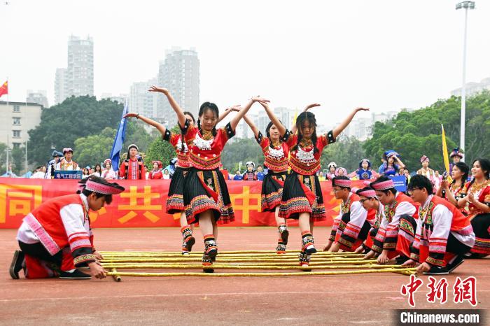 图为竹竿舞表演。共青团新葡的京集团8814检测站委员会供图