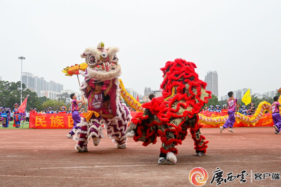 祥龙醒狮舞动,赢得阵阵喝彩;伴随着动听的旋律和轻快的节拍,同学们身着绚丽民族服装,踏歌跳起竹竿舞,尽显民族文化风采;500名青年学子齐声对唱山歌,颂青春朝气,展民族风尚。活动现场笑声歌声不断,掀起校园“最炫民族风”。