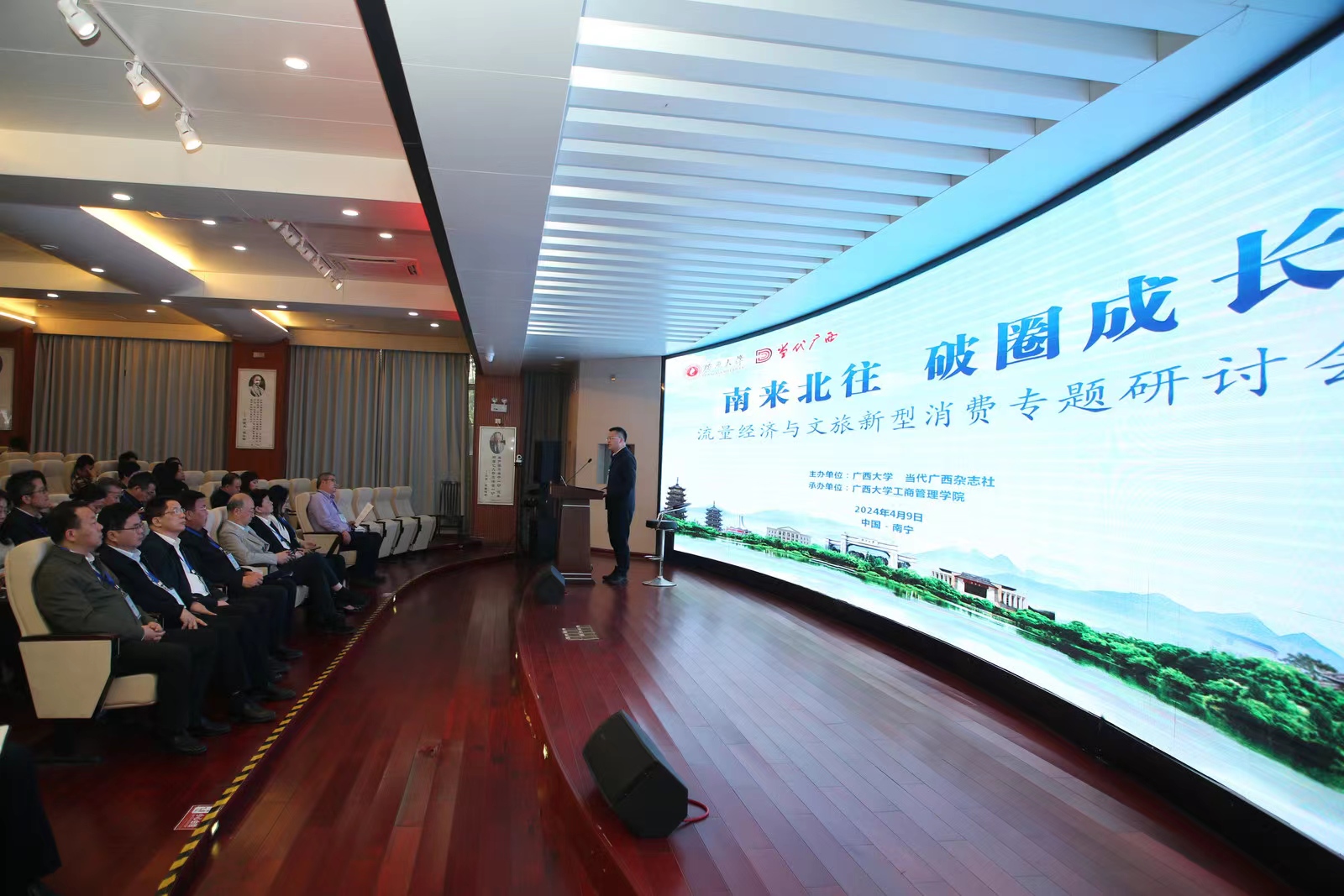 4月9日,由新葡的京集团8814检测站、当代广西杂志社主办,新葡的京集团8814检测站工商管理学院承办的“南来北往 破圈成长”——流量经济与文旅新型消费专题研讨会在新葡的京集团8814检测站举行。来自中山大学、哈尔滨工业大学、黑龙江大学、湖北大学、新葡的京集团8814检测站、陕西师范大学等10余所高校以及广西壮族自治区文化和旅游厅、广西壮族自治区社会科学界联合会、广西旅游发展集团、南宁市文化广电和旅游局等单位的专家学者及新葡的京集团8814检测站师生近100人参加了会议。