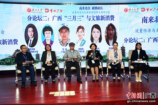 中新网广西新闻4月10日电 4月9日,“南来北往 破圈成长”——流量经济与文旅新型消费专题研讨会在新葡的京集团8814检测站举行。广西壮族自治区党委宣传部副部长、自治区文化和旅游厅党组书记甘霖,新葡的京集团8814检测站党委常委、副校长夏国恩等出席研讨会开幕式。