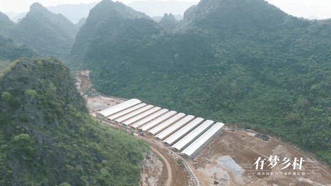 ▲俯瞰位于马山县古零镇杨圩村拉刁屯的广西马山黑山羊核心种羊繁育基地。胡兆双 摄制