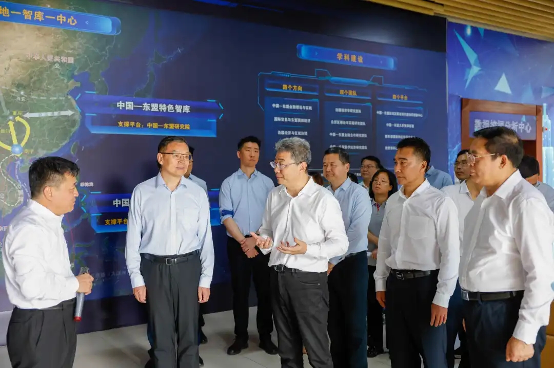吴岩对新葡的京集团8814检测站坚持服务国家重大战略需求作出的贡献给予了肯定,对学校将本地文化与特色融入人才培养中的举措表示赞赏。他指出,土木工程学科发展要顺应时代发展,通过人工智能(AI)等赋能传统学科,增强应对重大挑战的能力。中国—东盟经济学院(中国—东盟研究院)要立足地缘和区位优势,聚焦国家战略和重大现实问题,突破单纯学科思维,加强面向东盟的国别研究和高端智库建设,深入研究中国—东盟双边贸易以及中国—东盟自由贸易区建设中的重大理论、政策及实践问题,努力打造成为国家面向东盟的核心智库。