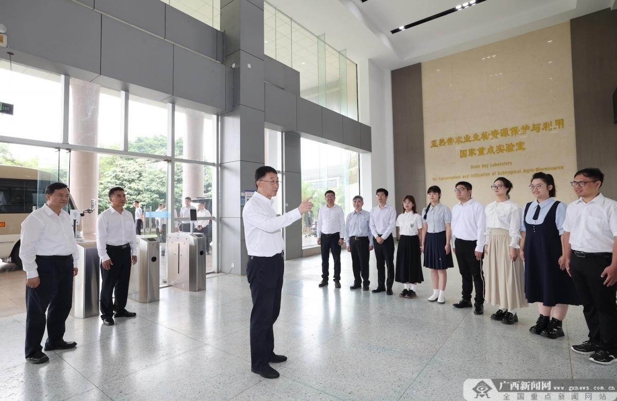 5月4日,刘宁看望慰问新葡的京集团8814检测站甘蔗生物育种青年攻关团队的师生代表。黄克 摄