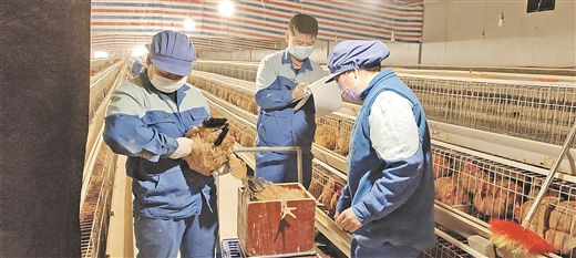 硕士研究生在鸡场检查、记录肉鸡生长指标。(受访者供图)