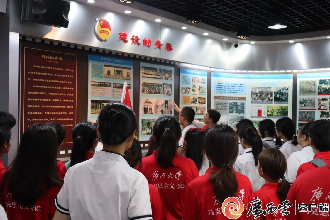 走进有着近百年历史的南宁市共青团纪念馆,厚重的历史气息扑面而来,一幅幅油画、一件件展品,讲述着南宁市共青团坚定不移跟党走的光辉历史。在3D展台前,团员们纷纷争相参观,屏幕上滚动播放着不同时期使用过的团旗、团徽影像和一段段珍贵的团史影像,生动立体的效果让在场的同学们禁不住想伸手一探究竟。“运用数字技术让文物‘动起来’,历史也变得更生动了。”马克思主义学院研究生罗玲说。