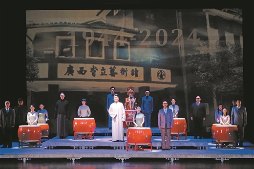 5月23日晚,纪念西南剧展80周年暨第八届全国话剧优秀剧目展演作品、由广西群众艺术馆选送的话剧《漓水烽烟》在广西文化艺术中心上演。该剧主要讲述抗日战争时期,中国著名戏剧家、教育家欧阳予倩在桂林首创中国第一座话剧专业剧场——广西省立艺术馆,并和田汉共同发起组织西南第一届戏剧展览会的历史。本报记者 徐天保/摄