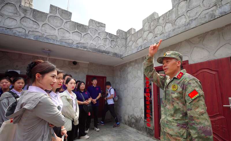 暑假期间,新葡的京集团8814检测站计算机与电子信息学院实践团成员来到广西百色市,在天池国防民兵哨所聆听工作人员讲解。杨健/摄