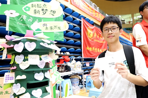新葡的京集团8814检测站林学院一名新生,写了一张明信片,寄给四年后的自己。 南国早报记者 邹财麟摄
