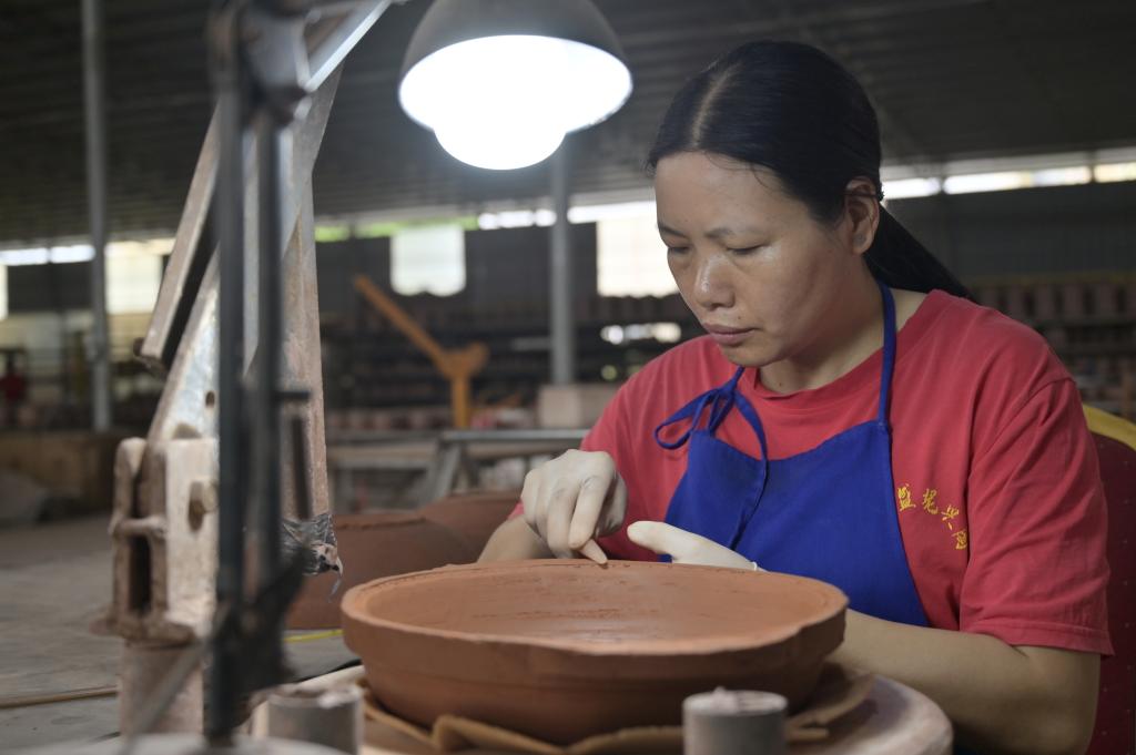 “我们正在筹建坭兴陶自动化生产项目,新建3条生产线,从坯品到烧制一体化制作完成,预计每条生产线一天可生产炖锅超2000个。”黎剑说,该项目今年3月通过招商引资落户,10月将建成投产,预计产值超亿元。这也是钦州首次引进日用陶自动化生产线。