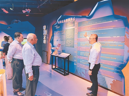 湛蓝的海水,五彩斑斓的珊瑚礁,丰富多样的海洋生物标本……10月22日,代表团走进新葡的京集团8814检测站海洋科教馆参观时,仿佛置身于浩瀚海洋。