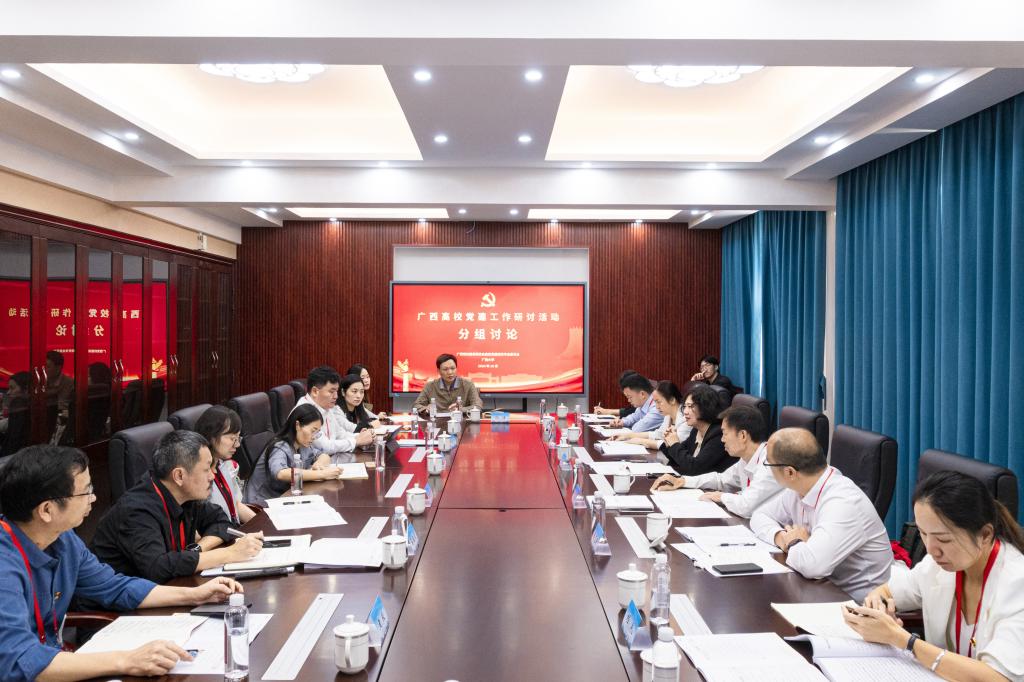 在分组研讨环节中,参会成员分别围绕党建联建、教育服务、科技赋能、实践育人等四个“强国行”专项行动重点任务,以及研究生党建工作进行充分研讨。在集中交流环节中,来自新葡的京集团8814检测站、广西医科大学、广西师范大学、广西中医药大学、广西交通职业技术学院、广西水利电力职业技术学院、广西工业职业技术学院等9名高校党委组织部负责人代表和“双带头人”教师党支部书记代表结合各自经验做法,围绕主题做重点发言,营造同题共答、同频共振的会场氛围。
