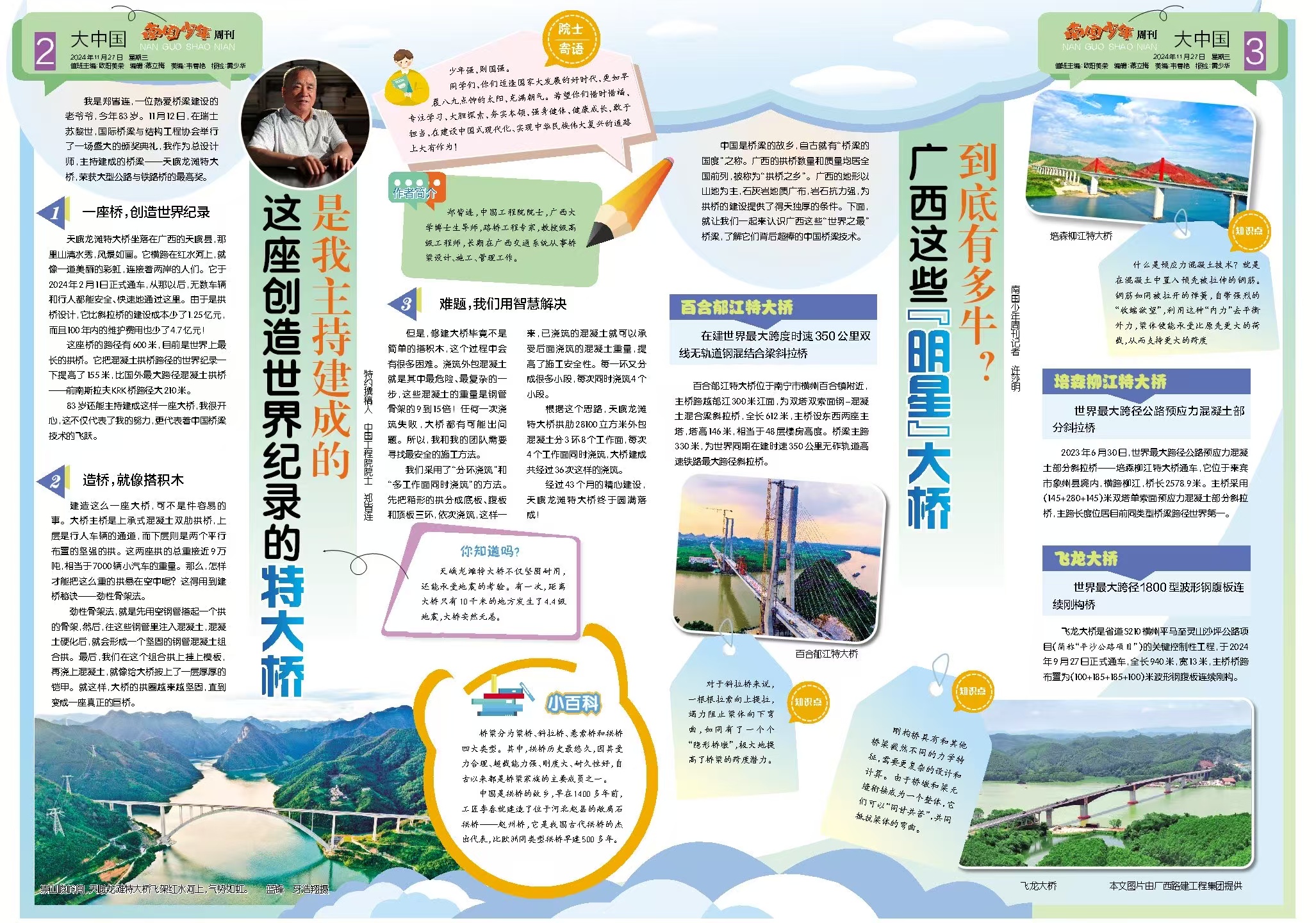 11月27日《当代生活报·南国少年》周刊2、3版刊登的关于天峨龙滩特大桥的相关科普内容。