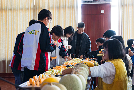 在交流互动环节,唐小付邀请村民和企业代表一起品尝他的科研成果——数十个模样不一、种类不同的哈密瓜。大家品尝过后,对清甜可口的哈密瓜赞不绝口,并积极地向唐小付提问,进一步了解哈密瓜的种植技术和市场潜力。这不仅加深了大家对哈密瓜种植技术的认识,也增强了大家对农业科技创新的信心。