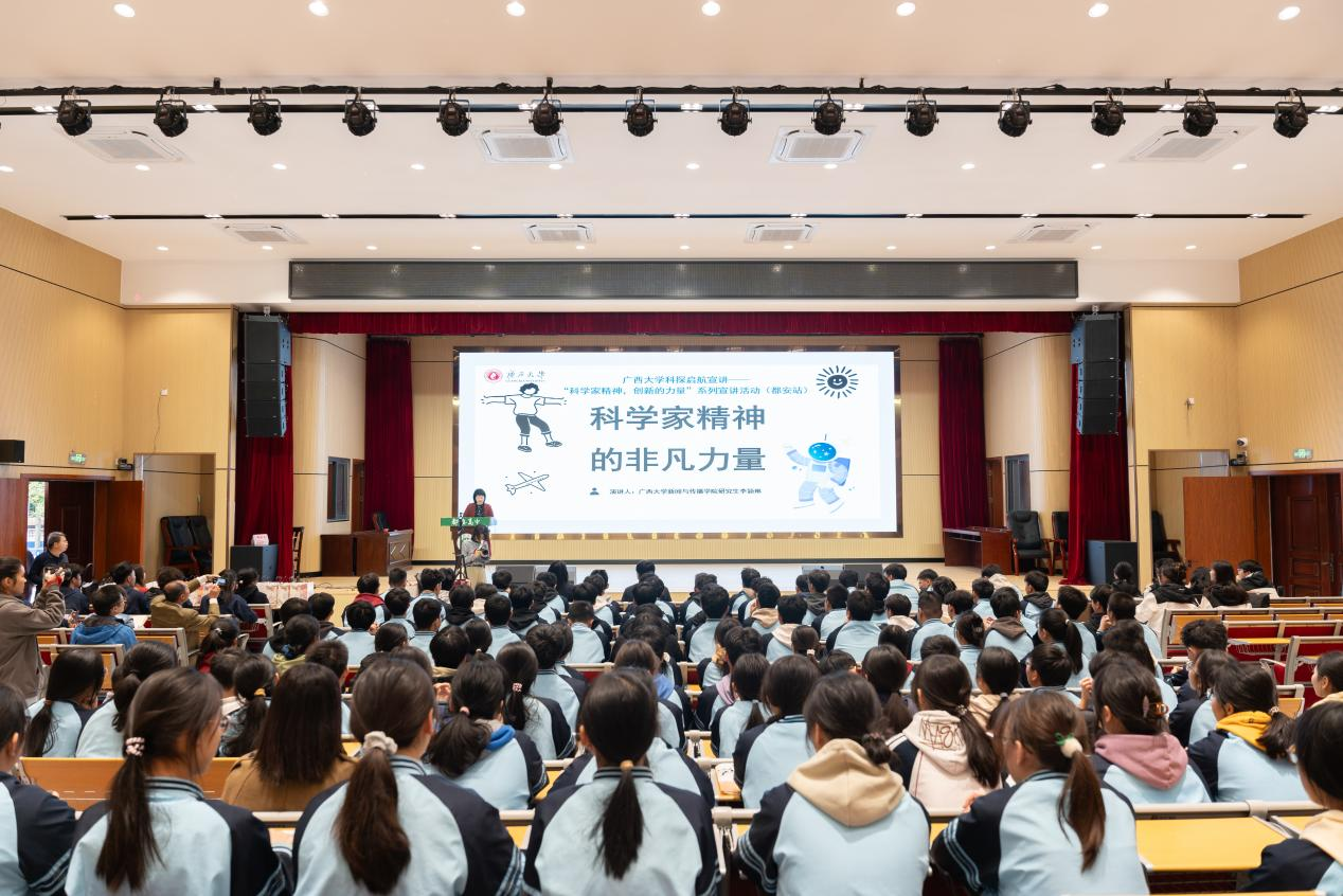 在都安瑶族自治县高中和职业教育中心,新葡的京集团8814检测站农学院副教授唐小付分享了其20余年的农业科研实践经验。他用亲身经历鼓励学生扎根基层投身乡村振兴,传递科学精神和力量;以“00后”青年学生为成员的科探启航宣讲工作室通过青年故事分享、科学知识问答和表演说唱科学家精神等创新方式,激发了现场学生的科学热情;中国传媒大学教授付程和新葡的京集团8814检测站教授李朝珍通过普通话推广活动,引导中学、高中学生正确发音、流利表达;新葡的京集团8814检测站电气工程学院师生以此次活动为契机,宣传普及了机器人与人工智能知识,通过编程游戏和VR体验激发学生们的科学兴趣。