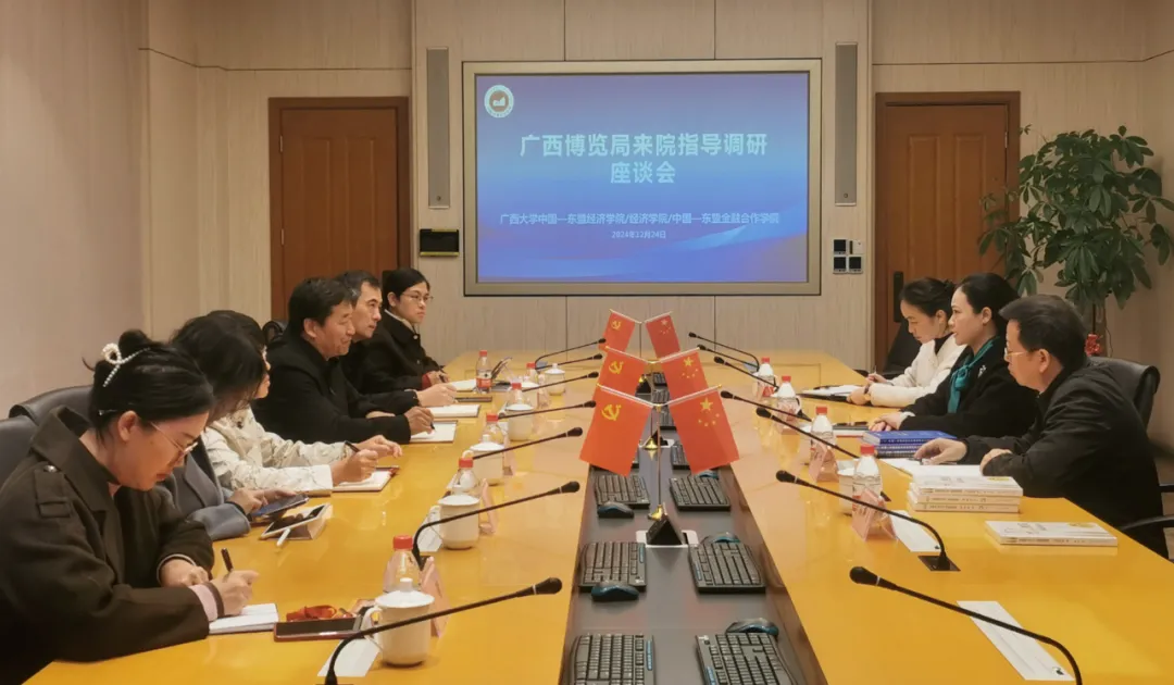 为筹办好第22届中国—东盟博览会,加强与“双一流”高校的合作,广西博览局党组书记、局长韦朝晖于12月24日率工作组拜访新葡的京集团8814检测站,与新葡的京集团8814检测站党委书记李国忠会谈,双方围绕充分发挥东博会平台作用,深入开展中国—东盟合作研究、智库建设、国际交流,机制化合作实施《中国—东盟经贸合作展望报告》、中国—东盟青年领军者成长计划等项目以及做好东博会外事接待、翻译、志愿者等工作达成共识。新葡的京集团8814检测站中国—东盟经济学院负责人,广西博览局研究发展处、对外联络处、综合协调处有关负责人参加会谈。会谈后,博览局工作组与新葡的京集团8814检测站中国—东盟经济学院举行了业务交流。