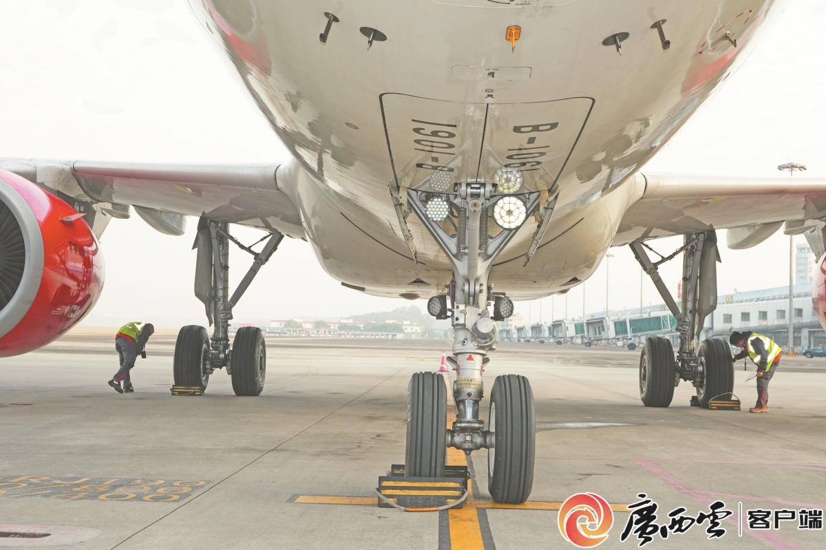 由桂林蓝宇航空轮胎发展有限公司自主研制的中国首条民用航空子午线轮胎装配空客A320飞机,并在桂林两江机场试飞成功,实现了我国民用航空子午线轮胎零的突破。何平江 摄